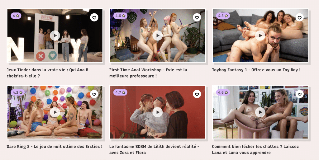 En Ersties, los vídeos presentan a jóvenes mujeres que se muestran con una espontaneidad poco común. Ríen, juegan y enseñan lo que realmente les gusta, sin presión ni escenas forzadas. Se perciben sus deseos, su curiosidad y su placer simple y asumido. Si buscas un porno ligero, alegre, lleno de encanto y centrado en mujeres que saben tomar las riendas, Ersties es una apuesta segura. ¡Es uno de nuestros grandes favoritos!